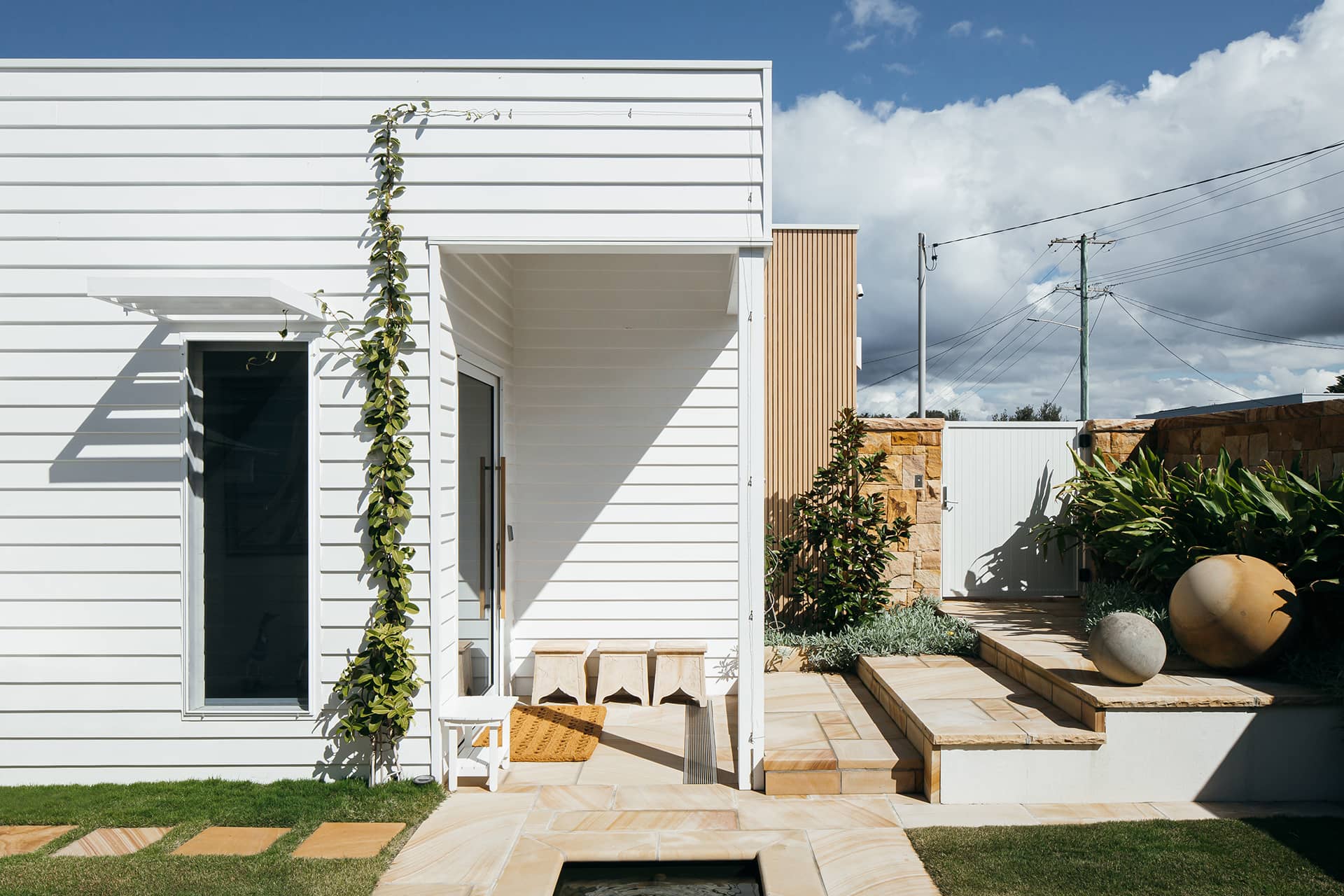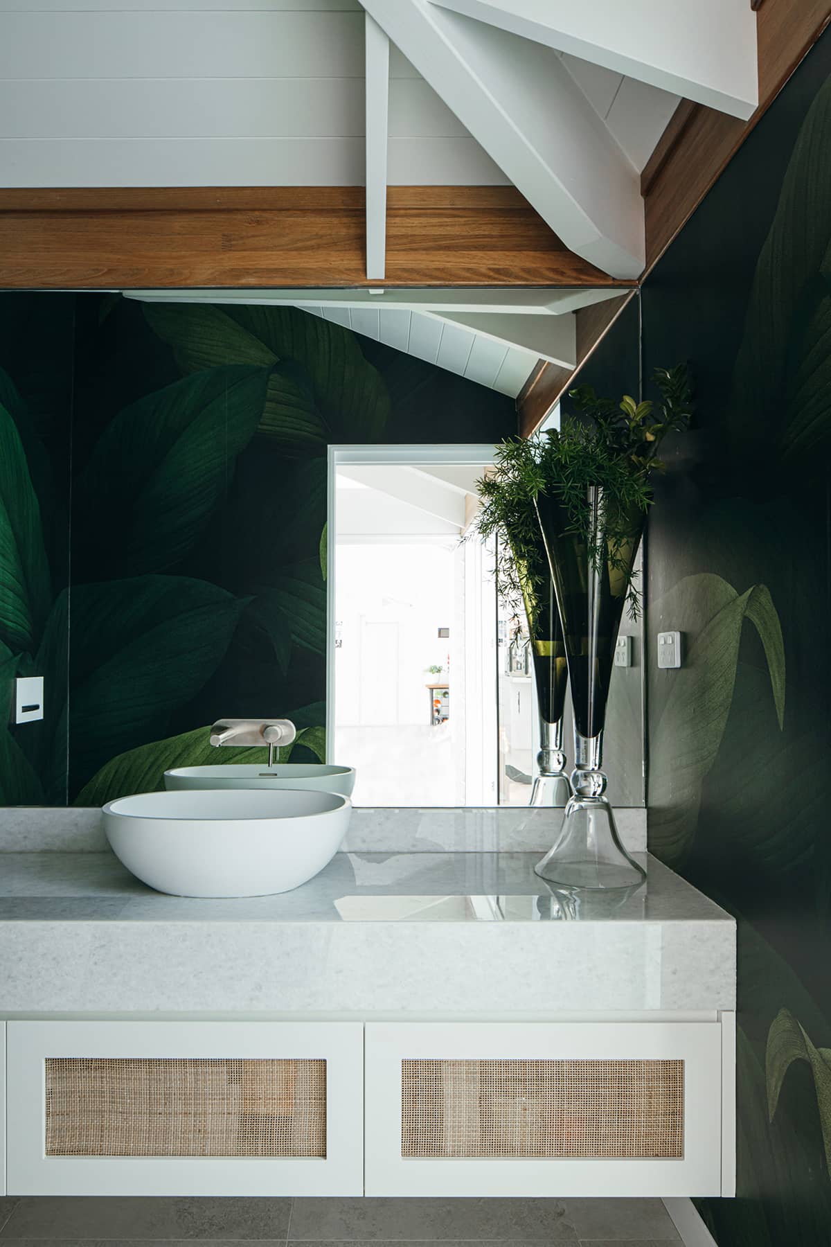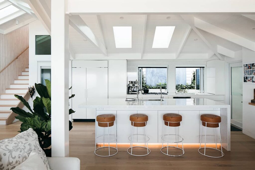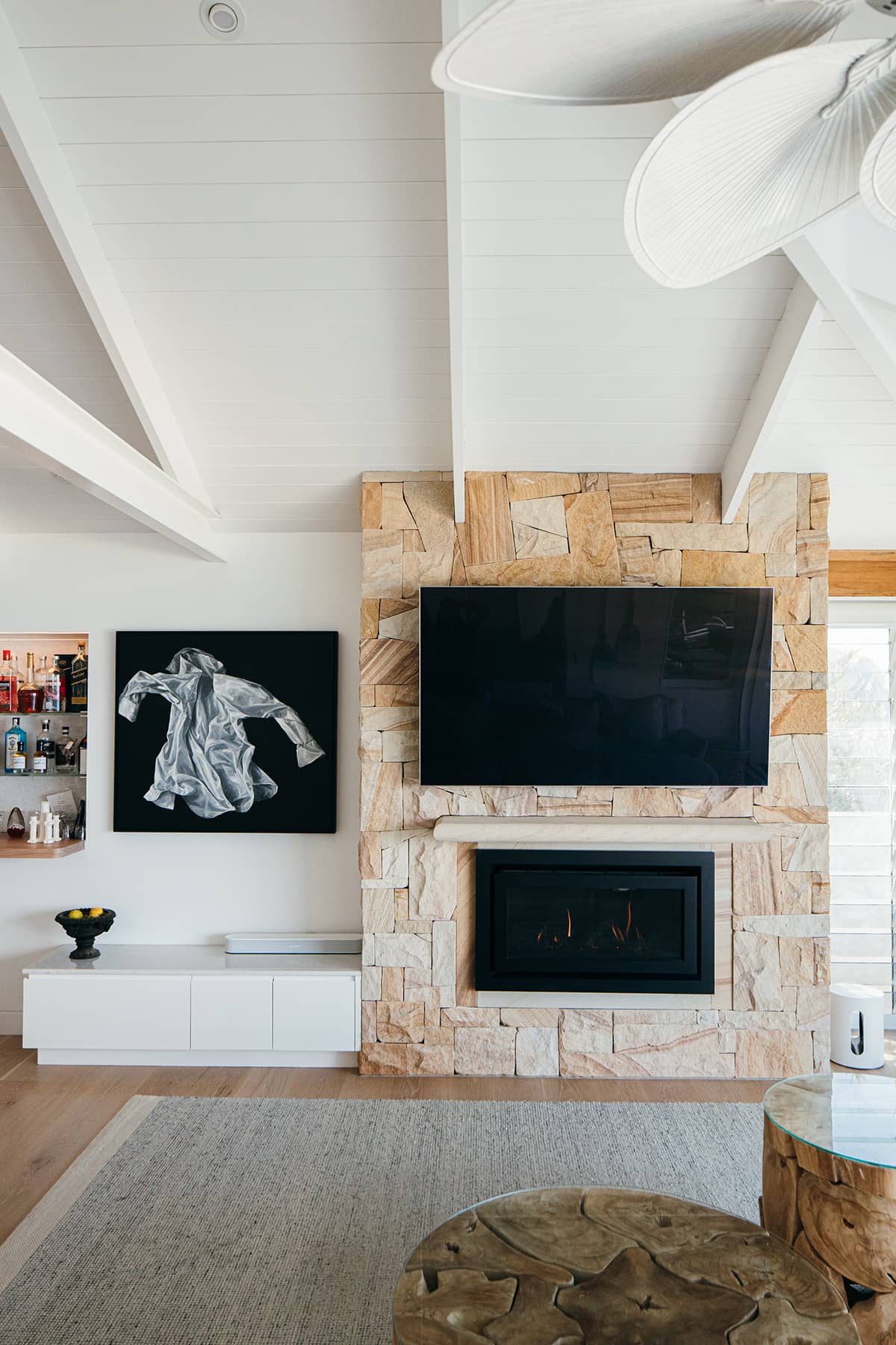 The existing beach house was also completely gutted and renovated, only keeping part of the existing exposed rafter ceiling, which was tied into the new extension with a similar design use of materials. The interiors were in keeping with the existing design of the original home which our client loved. Timber panelling, v groove features and sandstone were reused and incorporated within the extension to marry the old and new together and maintain the coastal beach look our client so loved!