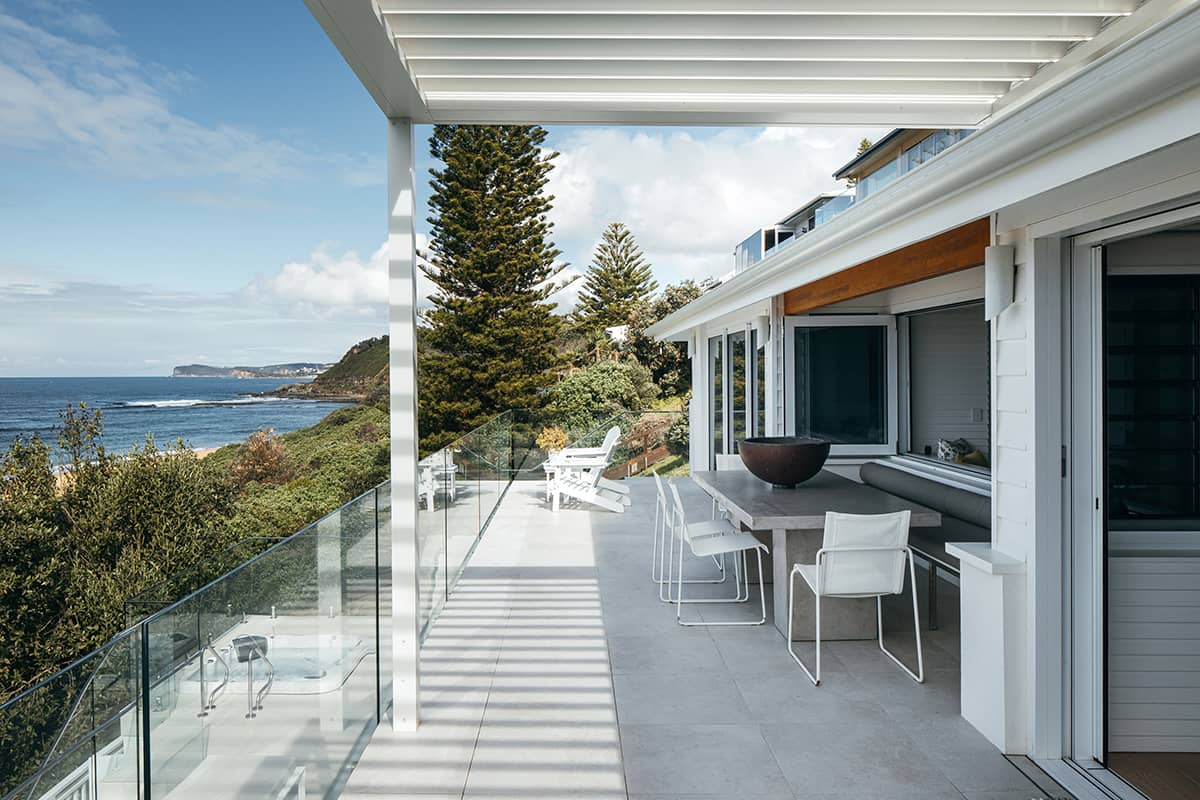 A split-level extension was designed by a Sydney architect in order to tie the new dwelling and the original house together on the steep hillside block. We were employed to undertake this major renovation and extension to a hillside beachfront home.