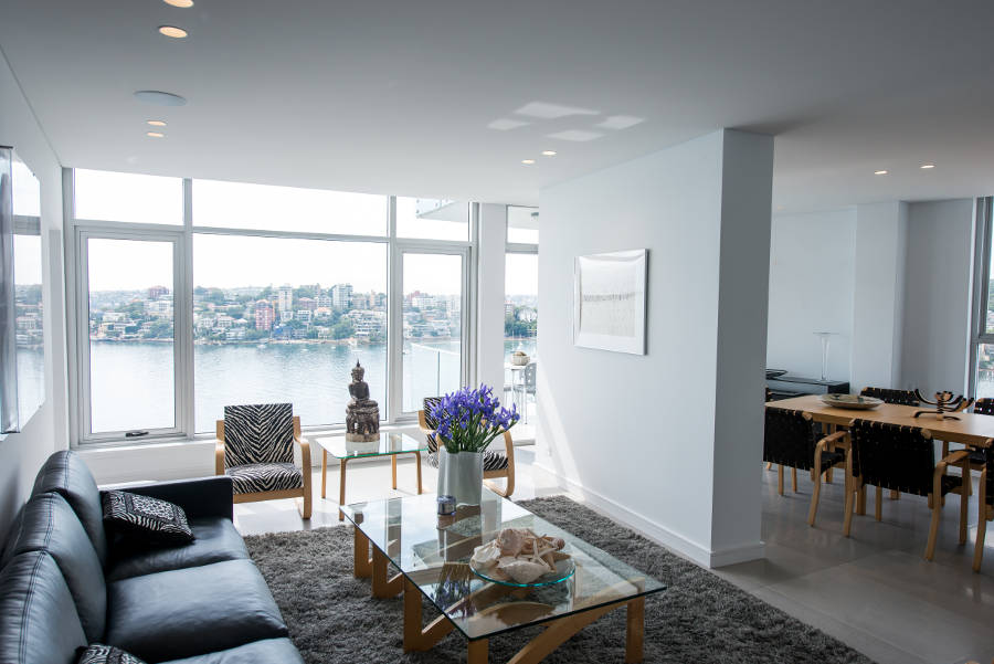 The end result, a stunning harbourside apartment in a contemporary modern design with panoramic views of the harbour and cityscape.