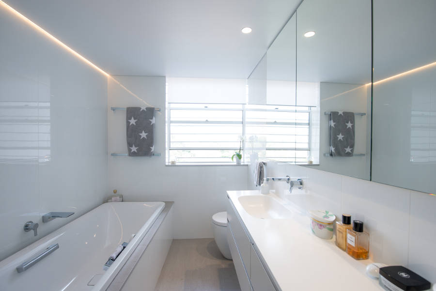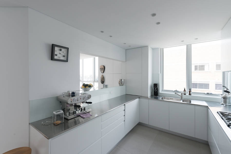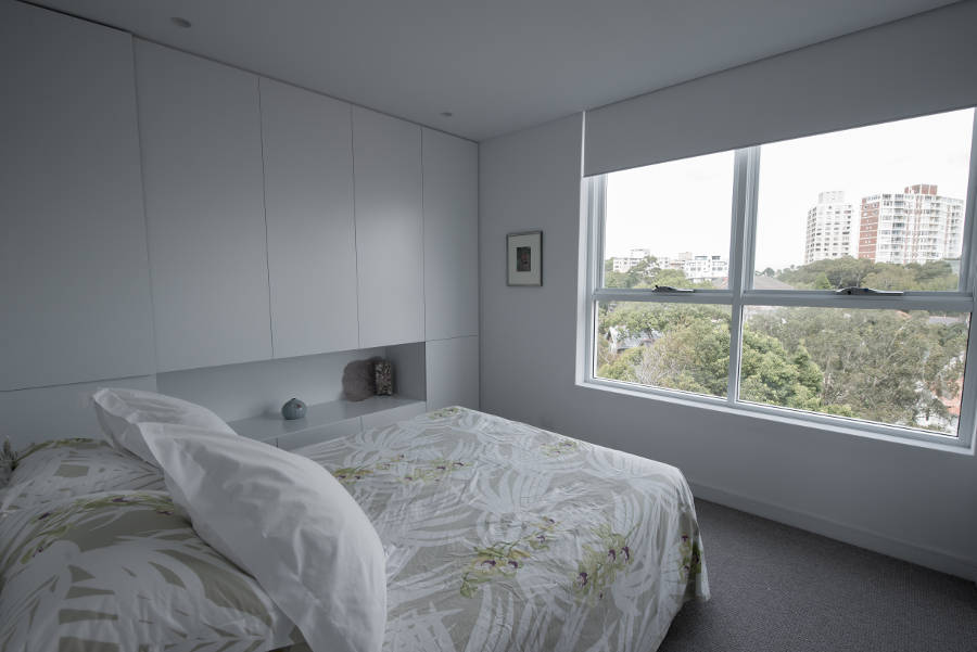 The construction certainly had its challenges. Not only was it difficult to access being on the 6th floor, but there was also no location to store materials or rubbish removal at the end of each day. As a temporary measure, we installed a material hoist to the side of the apartment building in order to bring building materials up to the apartment floor and rubbish down. At the end of each day or delivery, all materials and products had to be carted up to the unit and the car park cleaned.